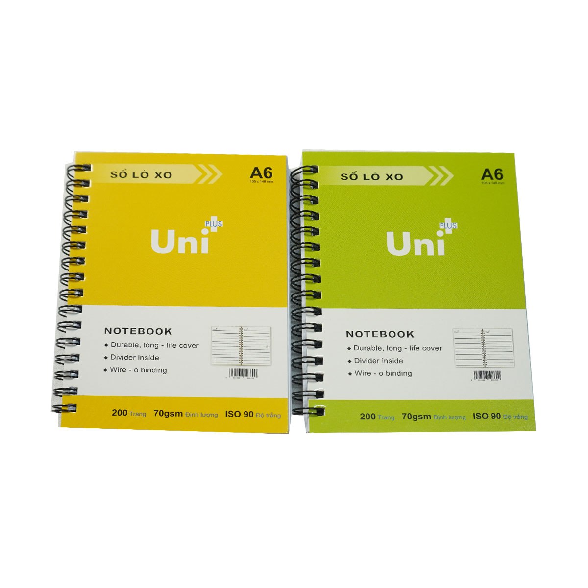 -Là sản phẩm sổ tập thương hiệu Uni Plus dạng ghi chú khổ A6, giấy kẻ ngang trắng đẹp ĐL 70gsm, dày 200 trang có lò xo bên mép trái thuận tiện cho việc ghi chép hoặc xé rời các trang cần thiết phục vụ cho công việc văn phòng.